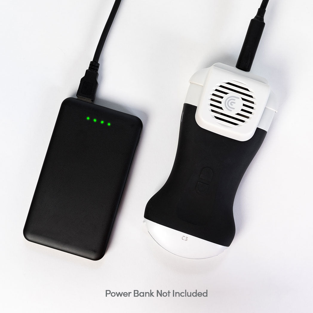 The Clarius Power Fan HD3 extends your scanning session with continuous power and extra cooling for educational sessions and heavy-use scenarios. Power Fan allows you to attach a USB cable to power the scanner with external power sources such as a wall outlet or power bank.